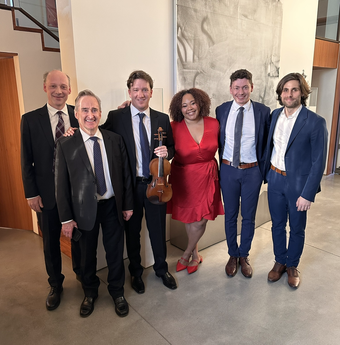 Clive Greensmith, James Conlon, Adam Millstein, Alaysha Fox, Dominic Cheli, Lucas Nogara following a performance of Recovered Voices music. Ms.Fox and Mr.Nogara are members of the LA Opera Young Artist Program.